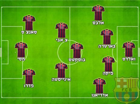 ההרכב המשוער: ויקטור ואלדס; דני אלבס, ג'רארד פיקה, מרק ברטרה, אדריאנו; סרחיו בוסקטס, צ'אבי, אנדרס אינייסטה; פדרו, אלכסיס סאנצ'ס, לאו מסי.