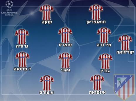 הרכב משוער: טיבו קורטואה; חואנפראן, דייגו גודין, מירנדה, אמיליאנו אינסואה; גאבי, מריו סוארס, ארדה טוראן, קוקה; ראול גארסיה, דייגו קוסטה.