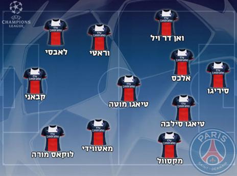 פ.ס.ז': סלבטורה סיריגו; גרגורי ואן דר ויל, אלכס, טיאגו סילבה, מקסוול; טיאגו מוטה, מרקו וראטי, בלז מאטווידי; לוקאס מורה, אסקיאל לאבסי, אדינסון קבאני.