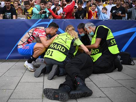 אנשים מסביב מיהרו מיד לסדרנית חסרת המזל כדי לבדוק את שלומה, גם רונאלדו עצמו ניגש אליה, ולאחר שווידא שמצבה טוב, הוא חזר לכר הדשא כדי להמשיך בחימום לקראת הבכורה המחודשת באדום, לראשונה מאז גמר ליגת האלופות 2009. צפו בתקרית >>>