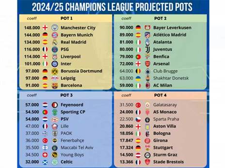 התמונה מתבהרת. לא פחות מ-36 מועדונים ישחקו בליגת האלופות של 2024/25, והערב (ראשון) בנפיקה וקלאב ברוז' הבטיחו את השתתפותן במפעל. בעונה הבאה הליגה, כזכור, תתקיים בפורמט ליגה בו יהיו שמונה משחקים לכל קבוצה בשלב העונה הסדירה. שמונה הראשונות יעלו אוטומטית לשמינית, ויהיה שלב נוק-אאוט בין מקומות 9 ל-24.