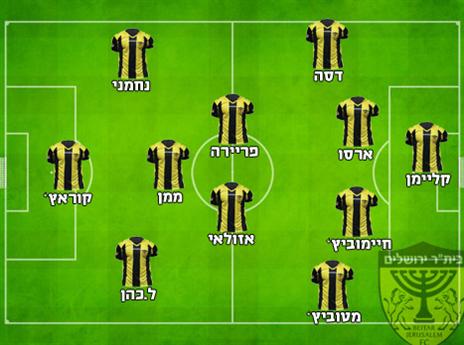 הרכב משוער: בוריס קליימן; אלי דסה, סזאר ארזו, זאביק חימוביץ', דושאן מטוביץ'; קלאודימיר פריירה, שלומי אזולאי, חנן ממן, לידור כהן; עומר נחמני, זרקו קוראץ'.