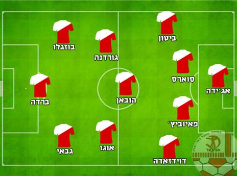 הרכב משוער: אוסטין אג'ידה, בן ביטון, וויליאם סווארס, טומיסלאב פאיוביץ', אופיר דוידזאדה, אובידו הובאן, ג'ון אוגו, רועי גורדנה, מאור בוזגלו, אליניב ברדה ודובב גבאי.