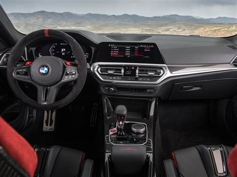 בתוך תא הנוסעים, ב.מ.וו M4 CSL משלבת אלמנטים ספורטיביים מכל הבא ליד, לא רק במונחים של אסתטיקה, וציוד טכנולוגי חדשני. בנוסף למושבי הקרבון, כצפוי, עם רתמת 6 נקודות, יש שפע של חומרים איכותיים כמו אלקנטרה ועור. ההגה הספורטיבי לובש פרטי קרבון וציפוי אלקנטרה., ויש אפילו חלל מיוחד מאחורי המושבים שמוקדש לאכלס שתי קסדות. להתקני הבטיחות, ולשימוש על המסלול, ל-BMW M4 Csl לוח מחוונים דיגיטלי בגודל 12.3 אינץ' כסטנדרט עם תפריטים ייחודיים לגרסה זו, ובמרכז הקונסולה צג מרכזי בגודל 10.25 אינץ', עם אופציה לתצוגה עלית. בינתיים אגב, חדי עין ישימו לב שהיא טרם החליפה את הקבינה לזו שהוצגה לאחרונה בסדרה 3 המחודשת, שכן גרסה זו מבוססת עדיין על הדגם שלפני הרענון.