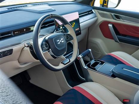 וזה לא נעצר במראה החיצוני. גם בפנים העיצוב מיוחד וייחודי לא פחות, עם ידית הילוכים מעוצבת כמו ידית של סירת מירוץ, דשבורד שטוח, אופקי ונקי מכפתורים, לוח מחוונים צר ובקו אחיד עם פתחי המיזוג, ומסך מולטימדיה ענק (14.6 אינץ') שמשלים את האווירה העתידנית. על הרקע הזה, מעט חבל שהאזור מול הנוסע לא קיבל את תשומת הלב הראויה, כשהחלל שם נראה מעט סתמי. אבל סה"כ מראה התא פשוט מקסים.