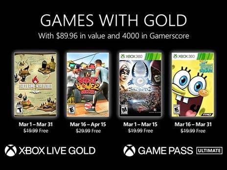 לשחקני ה-Xbox One ו-Xbox Series S|X המנויים ל-Xbox Live Gold ושירות הגיים פאס אולטימייט, מיקרוסופט מציעה ארבעה משחקים לחודש מרץ.
