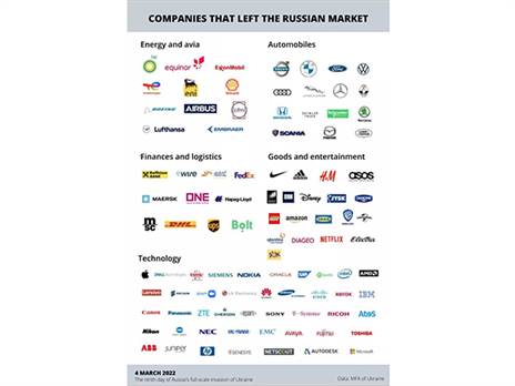 מיקרוסופט הודיעה כי היא משעה את כל המכירות החדשות של מוצרים ושירותים של מיקרוסופט ברוסיה במחאה על הפלישה של המדינה לאוקראינה. נשיא החברה בראד סמית' הודיע על ההחלטה בפוסט בבלוג: "אנחנו מכריזים היום כי נשעה את כל המכירות החדשות של מוצרים ושירותים של מיקרוסופט ברוסיה", כותב סמית', ומדגיש את עמדת החברה לגבי: "הפלישה הלא מוצדקת, הבלתי מעוררת והבלתי חוקית הזו של רוסיה".