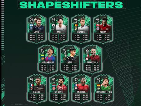 אז מה זה בכלל קלפי Shapeshifters? הקלפים החדשים האלה של רואים שחקנים מועברים לעמדות חדשות, וזוכים לשדרוג סטטיסטיקה אדיר. ניקולס פפה של ארסנל הופך לחלוץ, פייר-אמריק אובאמיאנג, הופך לשחקן כנף, וליונל מסי עובר להיות חלוץ רחבה ומקבל קלף בדירוג 99. חשיפת קבוצה מספר 2 תתקיים מחר, עם חשיפת שחקנים כמו קיליאן אמבפה, ואולי אפילו את כריסטיאנו רונאלדו.
