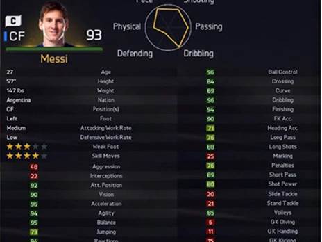 העונה הראשונה של מסי בפיפ"א ובאופן לא מפתיע החלשה שלו. מלבד התמונה הנוראית, הסטטיסטיקה לא מספקת קריאה נהדרת בפיפ"א 06 עבור ליונל מסי. קשה לדמיין שאחד הגדולים בכל הזמנים הזה דורג פעם רק 78. ובכל זאת, לפי הנתונים אפשר לראות כי הפוטנציאל היה שם, עם דירוג של 82 בשליטה בכדור, ודירוג של 87 בספרינטים, עם זאת, התכונה הטובה ביותר שלו הייתה השליטה (המפורסמת) שלו בכדור וכדרור - שם קיבל ציון 88 מרשים.