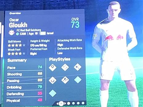 גולת הכותרת היא הסקיל מובס של גלוך והמשחק ברגל החלשה שבשניהם יש לו ארבעה כוכבים, בדומה לשחקנים גדולים נוספים. בנוסף, במוד הקריירה היהלום הישראלי של זלצבורג מחזיק בפוטנציאל של 84 ושוויו עומד על 6 מיליון ליש"ט.