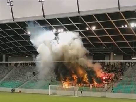 לובליאנה נקלעה לפיגור 1:0 במחצית המשחק הראשון של המוקדמות, בסלובניה, ואוהדיה הגיבו עם הדלקת אבוקות רבות ומעשית שריפת היציע מאחורי השער. כך מחאת האוהדים החריפה.
