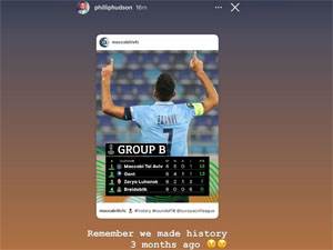 האנליסט הראשי של מכבי תל אביב, פיליפ האדסון, עקץ את הירוקים וכתב ברשתות החברתיות: "תזכרו שאנחנו עשינו היסטוריה כבר לפני שלושה חודשים".