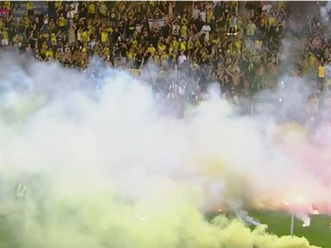 זמן קצת לאחר חידוש המשחק, מספר אבוקות וזיקוקים נוספים נזרקו לכר הדשא.