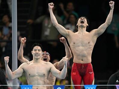 נבחרת השליחים של סין ב-4X100 מעורב גברים זכתה במדליית הזהב עם 3:27.46 דקות ובכך עצרה את רצף 15 הזכיות של ארה"ב (מ-1960!) במשחה. קיילב דרסל וחבריו האמריקאים סיימו ב-3:28:01 וצרפת, כולל לאון מרשאן שזכה בארד (לאחר ארבע זכיות בזהב בפריז), רשמו 3:28.38. פאן ג'אנלה הסיני חתם את המשחה עם 45.92 שניות ב-100 המטרים האחרונים.