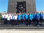 הנבחרת נחתה בוורשה. בראשון: תבקר באנדרטה לזכר מרד הגטו