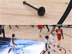 חפץ נפל מתקרת האולם וחלף ליד ראשו של שחקן ההוקס, גובר נבהל. "הרבה מזל"