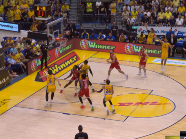 המשחק הזה היה מתוח מההתחלה, אבל דווקא על המגרש זה לא היה כל כך גלוי לפחות ברבע הראשון. שתי הקבוצות צברו נקודות בקצב מסחרר, וסיפקו עשר דקות ראשונות מרהיבות והתקפיות במיוחד אותן האדומים סיימו ביתרון נקודה. אקסבייר מנפורד היה ה-איש של סטפנוס דדאס באותם רגעים, והעניש פעם אחר פעם את השומרים הצהובים שלו מן העבר השני.