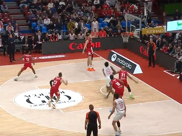 החבורה של דימיטריס איטודיס אומנם פתחה טוב יותר, בראשות דן אוטורו (שיא עונתי של 20 נקודות ו-7 ריבאונדים), אך לאנדרו בולמארו (16) דאג להשאיר את האיטלקים בחיים בדרך ל-25:25 בסיום הרבע הראשון ו-45:49 בהפסקה.