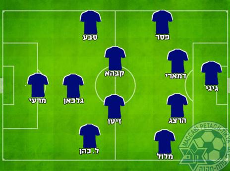 הרכב משוער: צחי גיגי; נאור פסר, איוון הרצג, ניצן דמארי, שמוליק מלול; מרווהאן קבהא (גידי קניוק), זיטו, פדרו גלבאן, דיא סבע; לידור כהן, ויקטור מרעי.