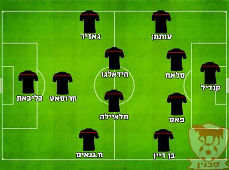 ההרכב המשוער: מחמוד קנדיל; עלי עותמן, עלאא אבו סלאח, אברהם פאס, דדי בן דיין; חאלד חלאיילה, חמד גנאים, כריסטיאן הידאלגו, מוחמד גאדיר; אלברט קרוסאט, מוחמד כליבאת.