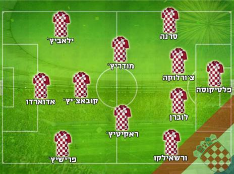 ההרכב המשוער: סטיפה פלטיקושה; דריו סרנה, ודראן צ'ורלוקה, דיאן לוברן, סימה ורסאלייקו; לוקה מודריץ', איבן רקיטיץ', מתיאו קובאצ'יץ'; איבן פרישיץ', ניקיצה ילאביץ', אדוארדו דה סילבה.