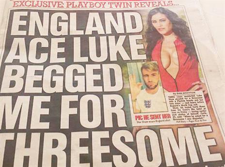 הקורבן הפעם, או המקרבן, אם תרצו, הוא מגנה בן ה-18 של נבחרת 3 האריות, לוק שואו. על פי הפרסום בצהובון הפופולארי, שואו הזמין לחדרו דוגמנית של המגזין פלייבוי בשם קרלה, ככל הנראה עיתוי שבין ההפסד של אנגליה לאורוגוואי ובין הניצחון של קוסטה ריקה על איטליה.