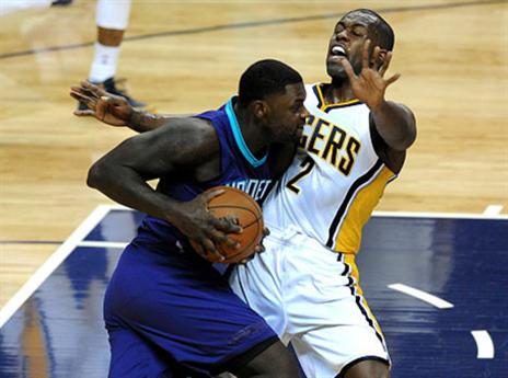 לאנס סטיבנסון, שפגש בפעם השנייה את האקסית, לא ראה בעיניים והתעסק בעיקר בטראש-טוק עם רוי היברט, כולל דחיפה מכוונת שהפילה את הביג-מן. "לא פגעתי בו כ"כ חזק, הוא עשה הצגה", התבדח סטיבנסון. "בורן רדי" לפחות גם תרם משהו מבחינת כדורסל עם 13 נק' מהספסל, אך ג'רלד הנדרסון היה זה שסחב את שארלוט (25:16) עם 20 נק'. בפייסרס (27:15) אפשר לציין רק את דייויד ווסט עם 19 נק'.