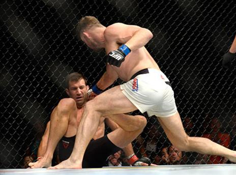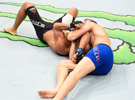 זו אולי נראית חניקת גיליוטינה, אך "ביג בן" קורא לה "גוגו צ'וק". ברנאט הוותיק, אלוף ה-UFC לשעבר, נחשב לאמן הכנעות וגם הוא לא ציפה להפסיד דווקא במגרש הביתי שלו.