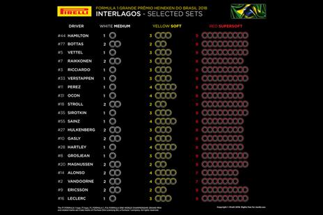 במידה ובסופו של דבר מזג האוויר יאפשר דירוג / מירוץ יבש, הרי שהטמפרטורות לא צפויות להיות חמות מאד וגם זה עשוי לעזור למרצדס, אם כי שילוב של גשם בשישי אבל מסלול יבש בדירוג ובמירוץ עשוי לייצר מצב דומה לאוסטין כאשר הקבוצות אינן יודעות עד כמה הצמיגים יחזיקו מעמד. מאפייני המסלול מעמידים את הצמיגים תחת מאמץ לא קטן ומירוץ כזה עשוי להיות קזינו. צריך לזכור שלמרות שסוגי הצמיגים לכאורה זהים לשנה שעברה, הרי שהשנה, כל סוג רך במידה אחת יותר. אם צמיגי המידיום יתגלו כצמיגי המירוץ העדיפים ויהיה צריך שתי עצירות, הרי שלהמילטון, לפטל ולנהגי הרדבול יש רק סט אחד מהם.