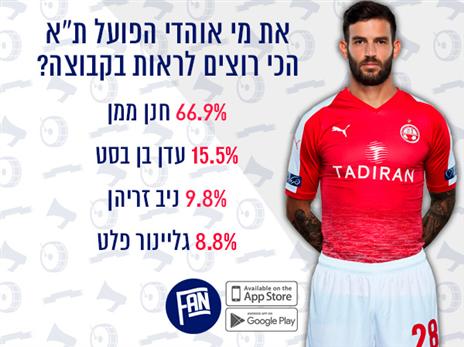 רובם המכריע של הירוקים רוצים לראות דווקא את מי שהיה כוכבה של היריבה העירונית חנן ממן (57.26 אחוזים), אחריו נבחרו בהתאמה החלוץ היווני, יאניס מיסטקידיס, והקשר, מקסים פלקושצ'נקו, קיבל 19.59 אחוזים מהקולות.