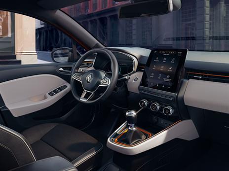 בדומה לכך, הקליאו דור חמש מצטיידת בטאבלט ראשי 10 אינץ' "הגדול ביותר בקבוצה זו", אומרים ברנו ומוסיפים כי הוא מספק את חווית המשתמש המרהיבה ביותר והחכמה מכולם. מסך 7 אינץ' יהיה זמין בגרסאות בסיסיות.  עוד מסתמן שכמו במגאן תהיה לו תאימות מהירה לטלפונים חכמים עם פונקציות רבות לשליטה על מערכת הניווט, השמע ומחשב דרך עם כל המידע הנדרש.  במפלס התחתון של הקליאו פקדים פיזיים לשליטה על מערכת המיזוג וגלגל ההגה כמו הוא מרובה מתגים. עוד תוספת מעניינת שצריכה לעניין את נאמני קונצרן VW, לקליאו החדשה יהיה גם לוח מחוונים "וירטואלי" גדול במקום חוגות קונבציונליות.