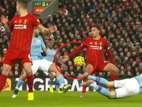 מגן ליברפול ספק נגע ביד לפני הגול הראשון, השופט התעלם