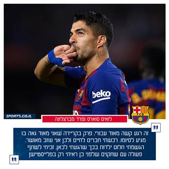 וכיאה לאגדה, היום (חמישי) - רגע לפני שהוא עובר באופן רשמי לאחת מיריבותיה המושבעות, אתלטיקו מדריד - ברצלונה נפרדה מאחד מחלוציה הגדולים בהיסטוריה בטקס הוקרה מיוחד, אליו הגיעו גם ליאו מסי, ג'רארד פיקה, ג'ורדי אלבה, סרחיו בוסקטס וסרג'י רוברטו. כמובן, לואיס סוארס עצמו גם כן התייחס לפרק המפואר ביותר בקריירה שלו שהגיע לסיומו ולא יכול היה להסתיר את ההתרגשות הגדולה.