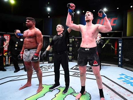 פרנקי אדגר הוותיק (בן 39), לשעבר האלוף במשקל קל, ספג את ההפסד הרביעי שלו בששת הקרבות האחרונים עם ברך לפרצוף על ידי קורי סנדהאגן המוכשר. האמריקני בן ה-28 סיים את הקרב בסיבוב הראשון כבר אחרי 28 שניות עם ניתור מרשים והרמת רגל לכיוון הלחי של יריבו, ומכה אחת עוצמתית סגרה את הסיפור. צפו בווידאו בנגן למעלה.