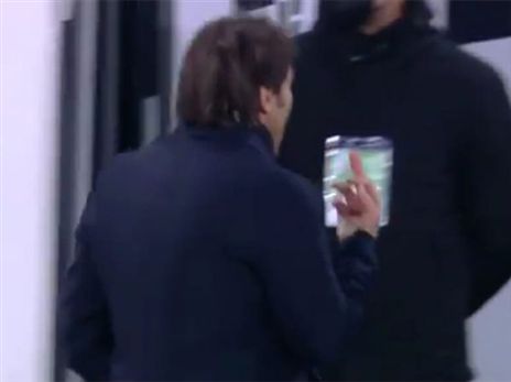 למרות העבר המפואר ביובה, בסיום המשחק קונטה נתפס בעדשות המצלמה כשהוא מסמן אצבע משולשת לנשיא אנדראה אניילי. באיטליה מדווחים שאניילי עצמו חגג ביציע ואמר לעברו של המאמן "תשתוק מטומטם".