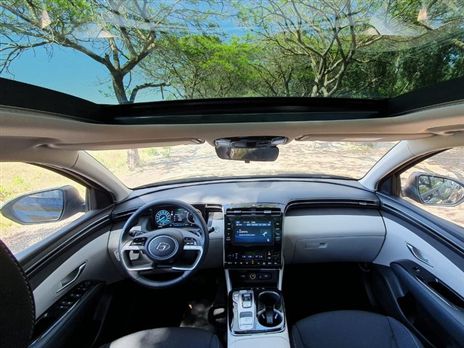 כמויות הפלסטיק הפשוט שהיו בעבר נזרקו דרך החלון אל ההיסטוריה. איכות החומרים עלתה פלאים בהשוואה למה שהכרנו בעבר וזה עניין הגיוני כי החומרים המודרניים כיום טובים יותר מבעבר. גם התפיסה השחורה של תא הנוסעים הוחלפה במשטחים גדולים בגוון קרם בחלק הקדמי ובדלתות האחוריות עם התאמה לחלק העליון. מילה טובה צריכה להאמר לסוכך של הגג הפנורמי שמגיע בגוון בהיר ולא שחור כמו ברוב המכוניות והוא אטום לחלוטין ומקטין את חדירת קרינת החום לתוך הרכב. סטנדרט הבנייה וההרכבה של המכונית הפכו לגבוהים יותר ומכאן שהטוסון החדש איננו רק נאה יותר אלא גם סולידי יותר ועשיר באבזור. מצאנו מספיק שקעי טעינה לסלולאריים וגם משטח אלחוטי חכם שמסתיר את הטלפון מעיני הנהג וטוב שכך, אבל היינו שמחים ליותר אזורי אחסון פרקטיים (בעיקר בחלק האחורי שסובל מכך).