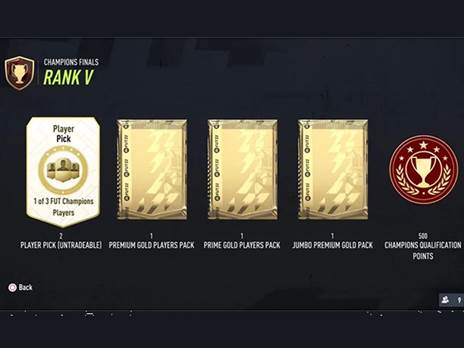 Rank 5: בחירת 2 שחקני FUT מתוך 3, חבילת פרמיום גולד, חבילת פריים גולד, חבילת ג'אמבו נדירה ו-10,000 מטבעות