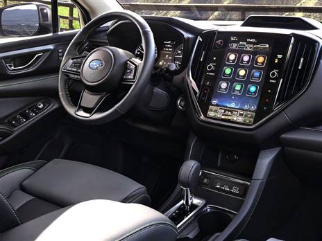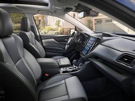 הבשורה הגדולה בתא הנוסעים היא מערכת מבוססת מסך מולטימדיה בגודל 11.6 אינץ', סטנדרטי לכל הגרסאות, במקום הקודמים בגדלים צנועים של 6.5 ו-8 אינץ'. משמאל ומימין למסך נשתמרו מקשים וידיות פיזיות, שנוחות לשימוש כמעט "עיוור". מערכת ההפעלה תומכת ממשקי סמארטפון אלחוטיים של Apple CarPlay ובקישוריות של Android Auto. ניתן לקבל ניווט רגיל (לא סמארטפון). בצד השימושי יותר, המצלמה האחורית שודרגה עם זרם שטיפה, מספר מחזיקי הכוסות בתא לא השתנה, אומרים סובארו, שכן יש עדיין 19 מהם פזורים בקבינה. ניתן להתקין כרגיל ספסל לשלושה נוסעים או שני כיסאות קפטן נפרדים בשורה השנייה. השורה האחרונה, שומרת על מקום מסורתי לשלושה ילדים.
