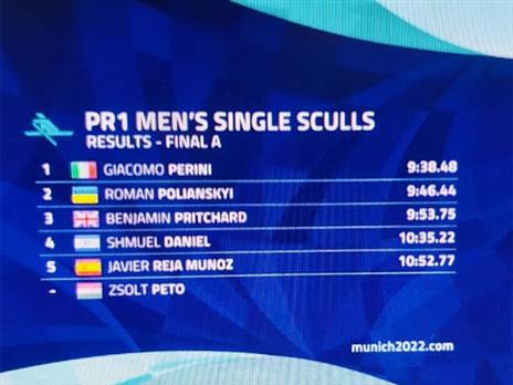 החותרת הפראלימפית רשמה 11:18.13 ב-2000 מ'. מקום רביעי לשמוליק דניאל בגברים עם תוצאה של 10:35.22