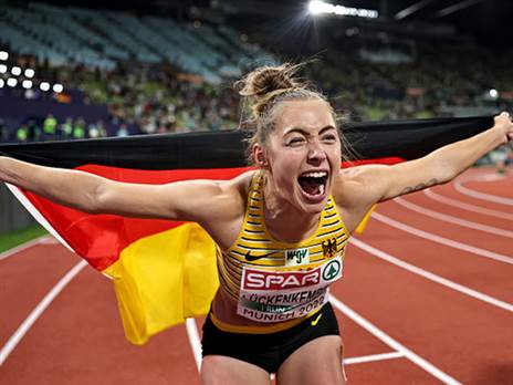 היום השני של אליפות אירופה באתלטיקה הולידה שני אירועי שיא. מרסל ג'ייקובס, האלוף האולימפי מטוקיו, זכה בפעם הראשונה במדליית הזהב באליפות אירופה בריצה ל-100 מטרים ואילו ג'ינה לוקנקמפר הדהימה בריצה המקבילה לנשים.