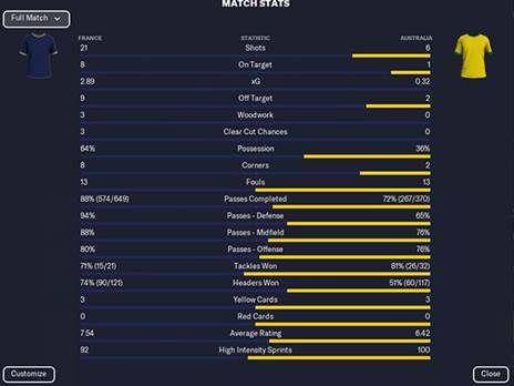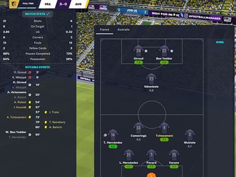 בדומה לגול השני, ויסאם בן ידר, חלוץ מונאקו שהחליף את קיליאן אמבפה כמה דקות לפני, קיבל מסירת רוחב מתיאו הררנדס וקבע את תוצאת הסיום. 3-0 לצרפת על אוסטרליה במשחק חד צדדי מאוד.