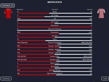 מחצית דיי שווה בסך הכל. מרוקו קצת יותר מסוכנת על הנייר אבל קרואטיה הייתה חדה יותר במחצית הראשונה וגם מובילה. מחצית מהנה ביותר - הלוואי שנקבל כזה גם היו