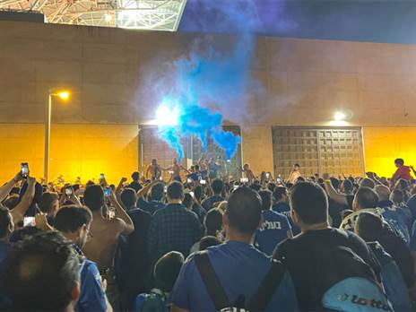 האוהדים, כצפוי, חגגו במשך דקות ארוכות עם השחקנים אחרי עונה מלאת עליות וירידות בלאומית. צפו בנגן למעלה >>>>