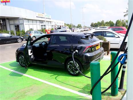 באחד מימי המבחן המסכמים אני חוזר לנקודת ההתחלה שלו, בהבדל אחד קטן: במקום עמוד טעינה חלשלוש במגרש חניה הולנדי ליד חנויות ממכר ובתי עסקים, המכונית החשמלית שלנו אורבת למסוף "אולטרא מהיר" בתחנת הדלק, מחכה שהג'יאומטרי C תפנה את המטען. אולטרא מהיר הוא מושג הייטקי מעולמות רכבי הקיצון אלא שמוטב להתייחס אליו בזהירות הנדרשת; מד הסוללה של ה-MG דיווח על 109 קילומטרים זמינים – וטעינה עד 90% ארכה כמעט שעה.