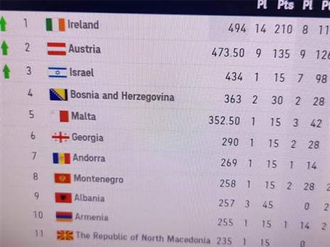 בתחרות האחרונה, מרוץ השליחים המעורב (ערן סיבוני, שני זכאי, נועם ממו וניצן אסס), ישראל סיימה במקום השלישי עם 3:27.57 דקות. בסך הכל הנבחרת צברה 434 נקודות, פחות מאירלנד הראשונה ואוסטריה השנייה, ו-71 נקודות יותר מבוסניה הרביעית.