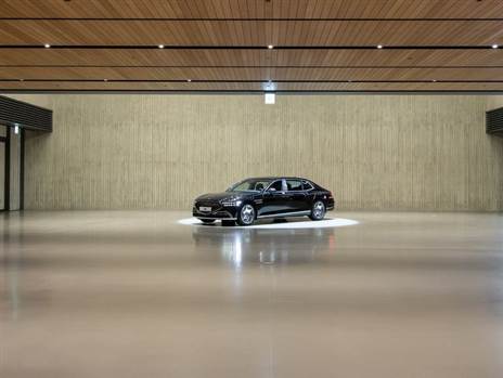 משם התבקשנו להגיע לאולם המסירה של המכונית החדשה ללקוח. בקוריאה לוקחים את זה בכל הרצינות האפשרית ולמעשה, כל מסירה של רכב היא אירוע שלם שעובר הפקה פרטית ובו המכונית נמסרת למשפחה של הרוכש והם מקבלים הצגה אמתית כשהם יושבים באולם שקוף ולפתע ממולם מגיחה המכונית שהם רכשו, היא מוצגת בתצוגת 360 על משטח מסתובב וגם זוג רובוטים סוקרים אותה רגע לפני המסירה בכדי לוודא שאין בה פגם. אנשי ג’נסיס סיפרו בהתרגשות שהטקס הזה מציף רגשות עזים אצל רוכשי המכוניות ויש שלא מצליחים לעצור את הדמעות.