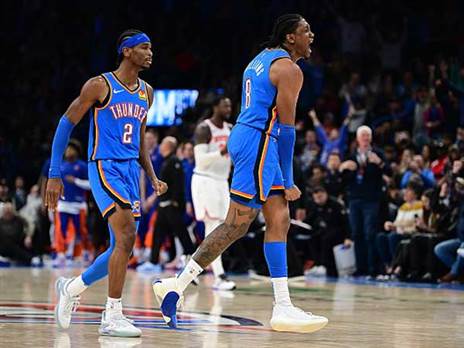 הת'אנדר פתחו בטירוף ועם רבע ראשון של 25:38 מיהרו להשתלט על המשחק. הניקס אמנם הצליחו לחזור לעניינים ולאזן את התוצאה ברבע השלישי, אך הת'אנדר בלמו את הקאמבק ושמרו על הניצחון בבית. שיי גילג'ס אלכסנדר וג'יילן וויליאמס להטו עם 36 נקודות כל אחד, בזמן של 25 נקודות של ג'וליוס רנדל אצל הניקס לא הספיקו, כמו גם 24 נקודות של ג'יילן ברנסון.