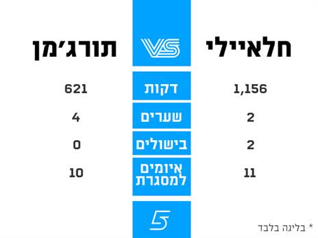 אז איך היתה חצי השנה הראשונה המשמעותית שלהם בבוגרים? נדמה אחרי שהליגה הגיעה כמעט למחצית הדרך, אפשר להתחיל ולהשוות. נפתח בדיסקליימר ברור: תורג'מן מתופקד יותר כחלוץ מרכזי, חלאיילי הוא הרבה יותר שחקן אגף - וזה כמובן משפיע גם על המספרים שנראה. אז בזהירות המתבקשת, בואו נצא לדרך.