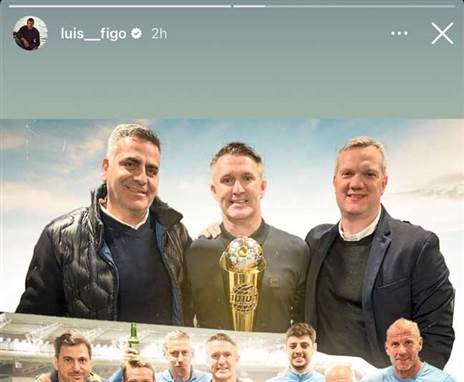 זה לא מנע מלואיס פיגו, אחד הכדורגלנים הגדולים במאה ה-21, לשתף את 4.8 מיליון עוקביו בברכה לרובי קין. "ברכות אחי", כתב פיגו אחרי התואר הראשון של המאמן.