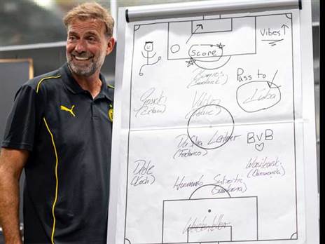 תיעוד של ההוראות של קלופ, שפשוט כתב לשחקניו "תעלו, תהנו ותשמרו על ווייבים טובים", הפך לוויראלי גם כן. בן ה-5 הבהיר כי הוא עדיין בפסק זמן וכי עדיין יתכן שלא יאמן פעם נוספת בקריירה, התקבל בחיבה וסיים עם החגיגה האייקונית שלו מול הקיר הצהוב המפורסם של דורטמונד.